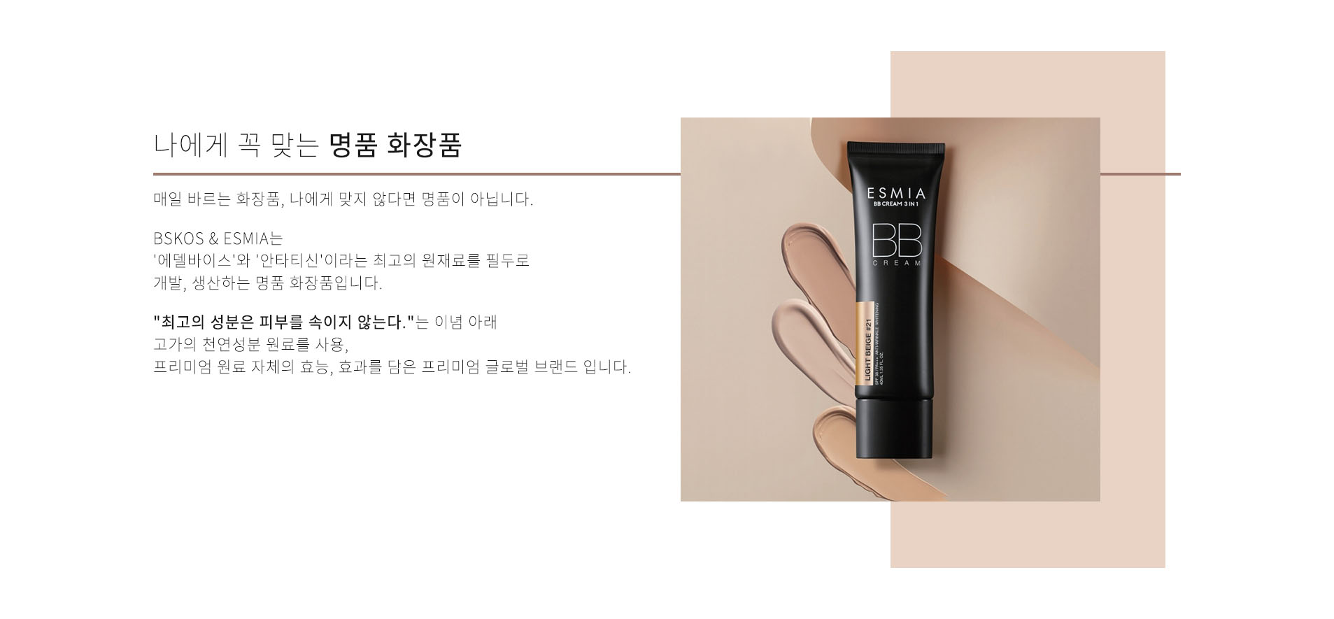 BSCOSMETIC은 지치고 바쁜 도심 속 현대인들의 건강한 아름다움을 추구합니다.